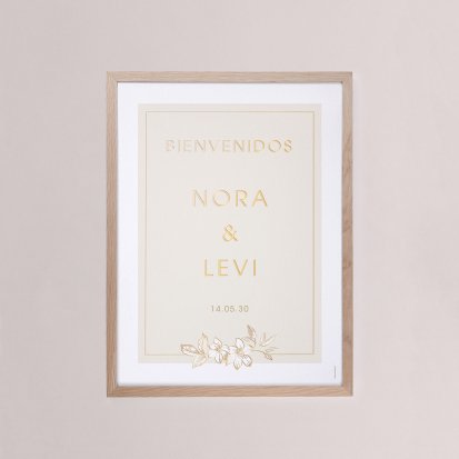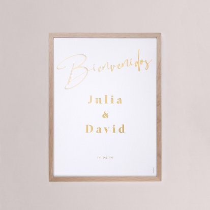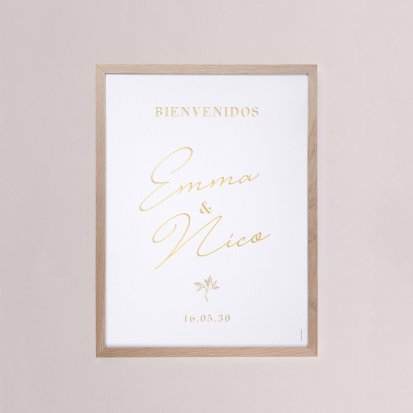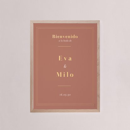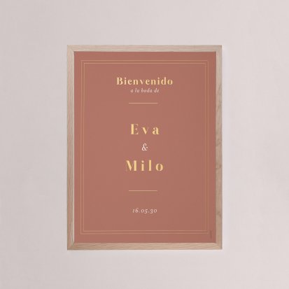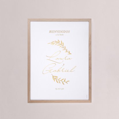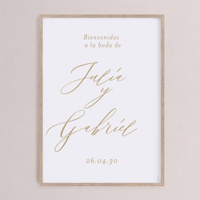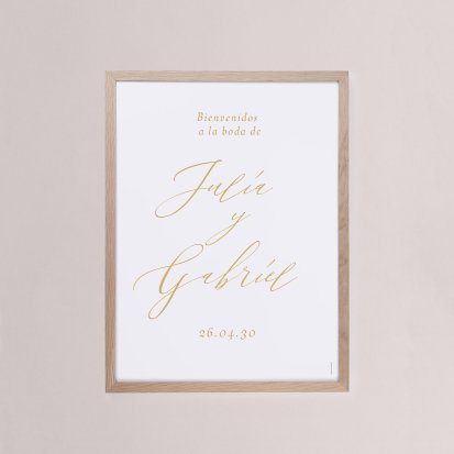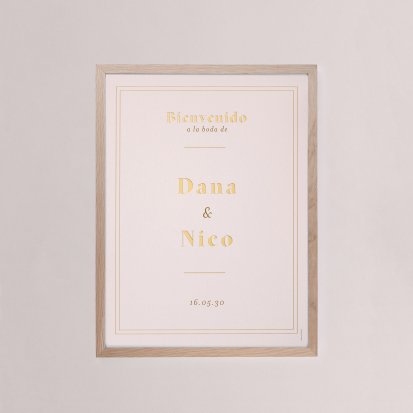 Una vez comentada la utilidad de los carteles, es necesario subrayar que se adaptan a la perfección a los gustos de los contrayentes. De preferir la decoración más clásica, hallarás opciones con el color blanco de fondo y las tipografías en tonos pastel o dorados.