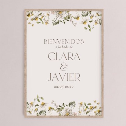 Decoración para el día de vuestra boda, da la bienvenida a vuestros invitados y ayudalos a guiarse el día de vuestro enlace, elige los carteles personalizables.