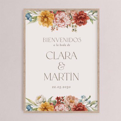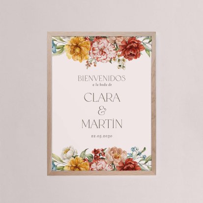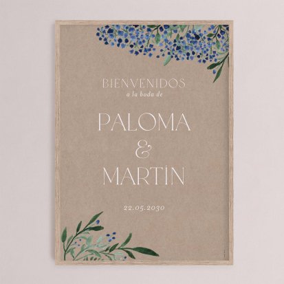 Decoración para el día de vuestra boda, da la bienvenida a vuestros invitados y ayudalos a guiarse el día de vuestro enlace, elige los carteles personalizables.