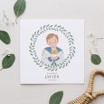 Vestido con un tradicional traje de marinero y una vela en las manos, una ilustración de la invitación Luz que alegrará el día de tus seres queridos con la feliz noticia: ¡La Comunión de tu hijo va a celebrarse pronto!