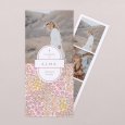 Flores en tonos pastel rosa, naranja y amarillo se mezclan en la invitación de bautizo Allegria. Una presentación colorida, perfecta para el anuncio del bautizo de tu bebé en primavera.