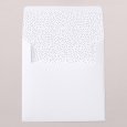 Esta invitación se presenta en forma de una tarjeta cuadrada doblada por la mitad. Sus esquinas son redondeadas para un toque más suave.