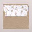 Ein Mädchen im Kommunionskleid mit einem Strauß Weizenähren im Arm - überbringen Sie die Einladung zur Kommunion Ihres Kindes mit der Einladungskarte Erntesegen und ihrer herzerwärmenden Illustration. Ein zartes und schlichtes Design, das die Schönheit der Kommunionsfeier widerspiegelt.