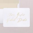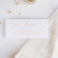 Los amantes de las letras se dejarán seducir por el modelo Alassio, un anuncio de boda sobrio y refinado que destaca por su elegante caligrafía resaltada en oro.