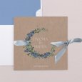 Esta invitación de boda es un díptico cuadrado.