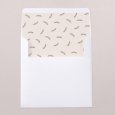 Esta invitación de boda es un díptico cuadrado.