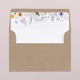 Una invitación de boda en formato horizontal plegada en tres partes y acompañada de su etiqueta personalizada. Al abrirla, tus seres invitados descubrirán los detalles de tu gran día.