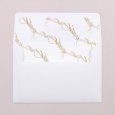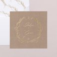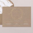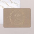 En esta invitación, vuestros nombres aparecerán escritos en el interior de una corona de flores. Este elegante modelo campestre, delicadamente perfilado y realzado con acabados dorados, anunciará con elegancia vuestra próxima unión.