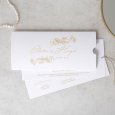Letras elegantes y motivos florales en acabado oro en la invitación Flor de Naranjo II, un modelo muy atractivo para anunciar vuestra boda de forma especial.