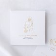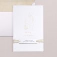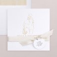 La silueta de la pareja en acabado oro aparece en la portada de la invitación de boda Precious love. Con un estilo romántico para anunciar una ceremonia chic que hará brillar vuestro amor.