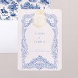 Ilustraciones y decoraciones sublimes de época decoran la invitación de boda Vienna para anunciar con elegancia este gran acontecimiento. Flores, árboles, palacetes, un medallón en acabado oro y, en él vuestras iniciales, aparecen en esta nueva creación con un estilo a lo Bridgerton.