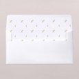 Esta invitación de boda incluye dos tarjetones y un papel vegetal doblado en tres partes para recoger las tarjetas.