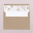 En esta invitación, una magnífica corona de flores en oro enmarca los nombres de los futuros casados. Una composición refinada, perfecta para una boda campestre, chic o bohemia.