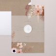 Este modelo incluye la tarjeta de invitación a la boda en formato díptico, una tarjeta para más información que quedará dentro de la invitación y una etiqueta para la fecha. Hay un agujero para incluir el lazo (a elegir y no incluido en el precio).