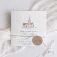 Este modelo incluye la tarjeta de invitación a la boda en formato díptico, una tarjeta para más información que quedará dentro de la invitación y una etiqueta para la fecha. Hay un agujero para incluir el lazo (a elegir y no incluido en el precio).