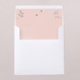 Este modelo incluye la invitación de boda en formato díptico cuadrado, en el interior un pequeño bolsillo donde incluir una segunda tarjeta para más información.