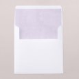 En la invitación de boda Wysteria, unas magníficas glicinias violetas se esbozan en acuarela alrededor de tu feliz anuncio. Una poética composición floral, perfecta para anunciar una boda de verano.