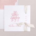 Este modelo incluye la invitación de boda en formato díptico cuadrado, en el interior un pequeño bolsillo donde incluir una segunda tarjeta para más información.