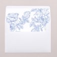 La invitación Mary aúna un estilo floral inglés actualizado y elegantes ventanas para anunciar tu enlace. El bonito recorte en forma de ventana redondeada revela generosas flores monocromáticas: una ilustración ideal para una boda con un encanto retro.