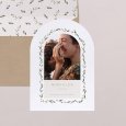 Esta invitación es una tarjeta con los lados rectos que podréis personalizar con los detalles de vuestra boda tanto en la cara como en el dorso.