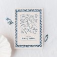 Un magnífico cuadro con aires de Mediterráneo se ilustra en la invitación de boda Roca Marina. Cítricos, mariscos, delicados ramitos de flores y cubiertos están bellamente esbozados, prometiendo una mesa y festividades en un Sur soleado.