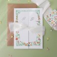 Sublimes acuarelas florales, iniciales de los novios escritas en caligrafía : esta invitación de boda llena de poesía será perfecta para los novios que sueñan con un día D lleno de flores, colores y alegría.