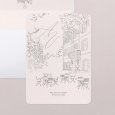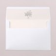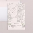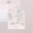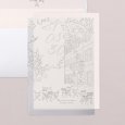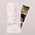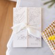 Invitación vertical, con una solapa central y dos solapas laterales móviles. Cuando se abren, revelan los detalles clave de tu gran día. Se pueden cerrar con un bonito lazo (en suplemento).
