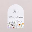 Con su elegante corte en forma de arco y a juego con su invitación, haz de este menú la decoración perfecta de las mesas. Complétala utilizando nuestros soportes de madera o decorando los menús con nuestros cordones y lazos (disponibles como accesorios).