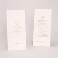 Con su elegante corte en forma de arco y a juego con su invitación, haz de este menú la decoración perfecta de las mesas. Complétala utilizando nuestros soportes de madera o decorando los menús con nuestros cordones y lazos (disponibles como accesorios).
