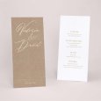 Con su elegante corte en forma de arco y a juego con su invitación, haz de este menú la decoración perfecta de las mesas. Complétala utilizando nuestros soportes de madera o decorando los menús con nuestros cordones y lazos (disponibles como accesorios).