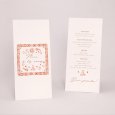 Con su elegante corte en forma de arco y a juego con su invitación, haz de este menú la decoración perfecta de las mesas. Complétala utilizando nuestros soportes de madera o decorando los menús con nuestros cordones y lazos (disponibles como accesorios).