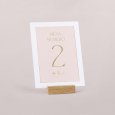 Ponlo en el centro de las mesas, ¡que se vea bien! Tus invitados encontrarán enseguida su sitio después de localizar su mesa en el seating plan.