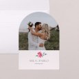 Agradece a tu familia y amigos su presencia en vuestro día con esta bonita tarjeta de agradecimiento de boda. En formato de arco que se puede personalizar tanto en la cara como en el dorso con vuestra foto y el mensaje que queráis transmitir.