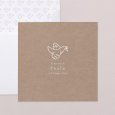 En la invitación de bautizo Magdalena, una bonita paloma blanca llevando una cruz. Y en su pico una ramita de olivo, símbolo de paz. Una ilustración sencilla y simbólica para una ceremonia tradicional.