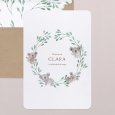 La invitación de bautizo Familia de Koalas va a encantar a tus invitados. Estos adorables animales en las ramas formando una corona vegetal invitan a tus seres queridos a acudir a una ceremonia que no se pueden perder.