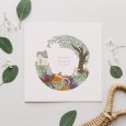 Una escena campestre con una iglesia, animales del bosque y muchas flores para compartir la feliz noticia: el bautizo de tu bebé se acerca. Sus ilustraciones hacen que este modelo Bosque de flores sea perfecto para una ceremonia primaveral.