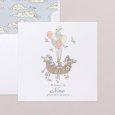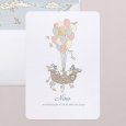La invitación de bautizo Over the clouds presenta unos divertidos aimales que viajan volando entre nubes y estrellas para anunciar este bonito evento. Una invitación infantil colorida de estilo vintage, ideal para compartir este momento único con vuestros seres queridos.