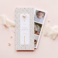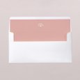 En la invitación de bautizo Gardenia, motivos florales rosados y campestres crean un conjunto elegante y refinado, perfecto para anunciar este día tan especial.