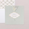 Anuncia el bautizo de tu bebé con la invitación Amadéo, donde la sobriedad y la elegancia se unen en tonos verde agua... La sencillez de esta invitación, adornada con el nombre de tu bebé bellamente caligrafiado y sublimada con un acabado dorado, encantará a tus seres queridos.