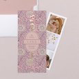 La invitación de bautizo Shalina destaca por sus motivos florales bohemios. Inspirada en el universo de Louise Misha, esta invitación se adorna con motivos florales para crear un ambiente refinado y bohemio. Perfecta para celebrar el bautizo de tu pequeña princesa y compartir tu felicidad con tus seres queridos.