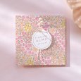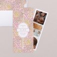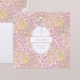 Flores en tonos pastel rosa, naranja y amarillo se mezclan en la invitación de bautizo Allegria. Una presentación colorida, perfecta para el anuncio del bautizo de tu bebé en primavera.