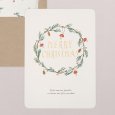 Una corona hecha de ramas de pino, de acebo y otros motivos ilustrados para que la felicitación Corona navideña - Winter, junto con su tipografía en oro, haga las delicias de vuestros familiares y amigos cuando la reciban.