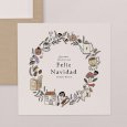 Una taza de té o chocolate caliente, un regalo, un trineo,...una serie de pequeños dibujos de detalles navideños formando una guirnalda especial en la tarjeta Cookie Crown. Un modelo con el que podrás desear Feliz Navidad a los que más quieres.