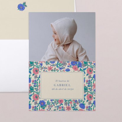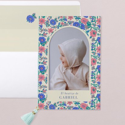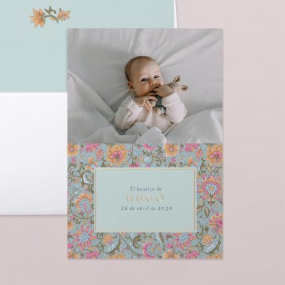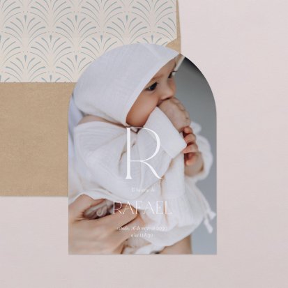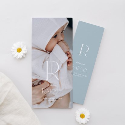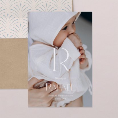 Un aspecto destacado de nuestras invitaciones de bautizo de niño es que son totalmente personalizables, tanto por la cara principal como por el dorso. Al seleccionar cualquier modelo que llame tu atención, tendrás acceso directo a la plantilla editable. Uno de los principales elementos que se puede cambiar es la foto. En muchas de nuestras tarjetas podrás introducir el retrato de tu hijo cuya ternura, con total seguridad, convencerá a los invitados para no faltar al bautizo.