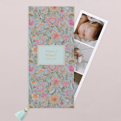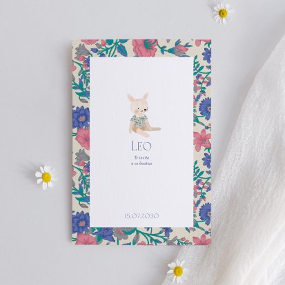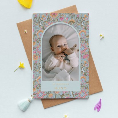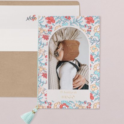 Nuestro catálogo de invitaciones de bautizo de niño se compone de una gran variedad de modelos, en estilos diversos. De esa manera, podrás encontrar la que más se ajuste al carácter que quieras otorgar al evento. Si, por ejemplo, quieres tocar la fibra sensible de los invitados, encontrarás numerosas tarjetas llenas de ternura, como el modelo Baptistin, que presenta una entrañable ilustración de un bebé durmiendo.