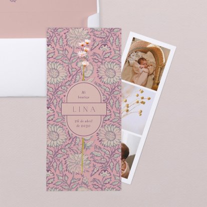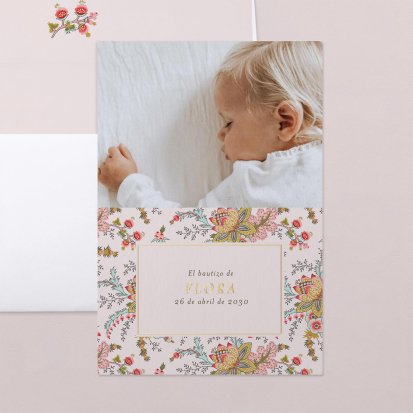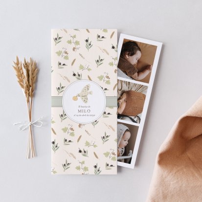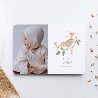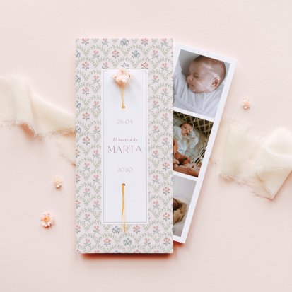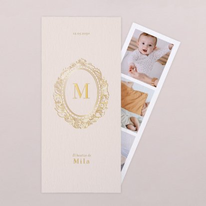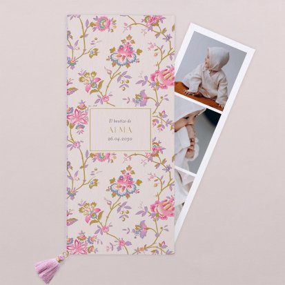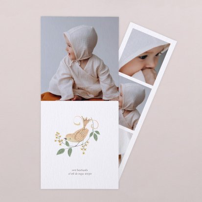 En ellas puedes poner fotos del niño o de la niña que recibirá el bautismo, así sorprenderás a tus invitados. Y será una bonita tarjeta de recuerdo para ellos. Tienes un montón de colores entre los que elegir, desde el clásico blanco o colores pastel claros, hasta rosa o terracota. Nuestros diseños son únicos; no encontrarás otras tarjetas iguales en ningún otro lugar.