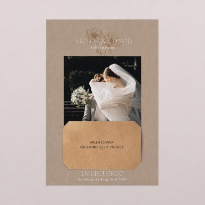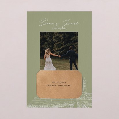 Si se van a entregar durante el banquete, intenta que el diseño vaya en consonancia con la temática, si la hay, y la decoración elegida. Así, funcionará como una extensión de la ceremonia. En este caso, también es posible añadir una fotografía de la pareja o un dibujo con un mensaje de agradecimiento que se pueda leer fácilmente.