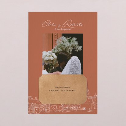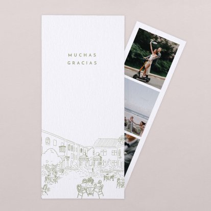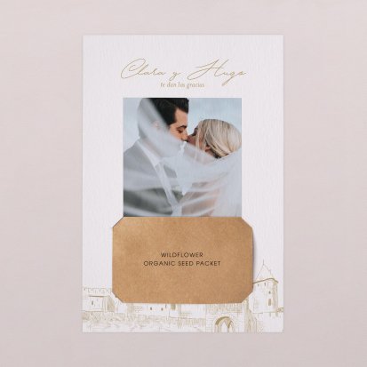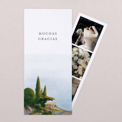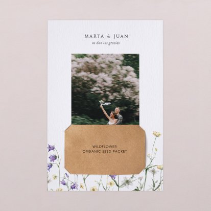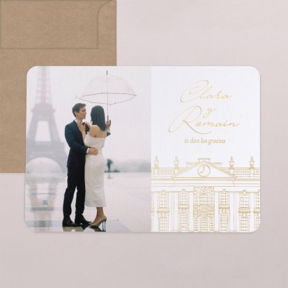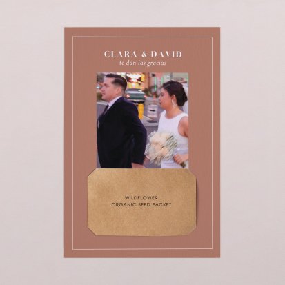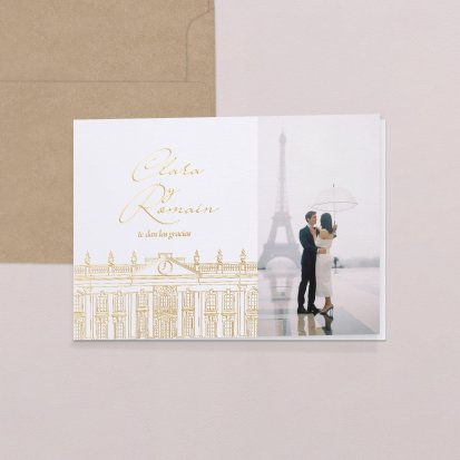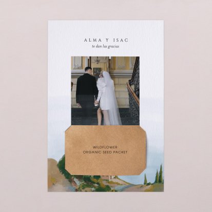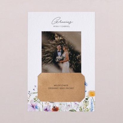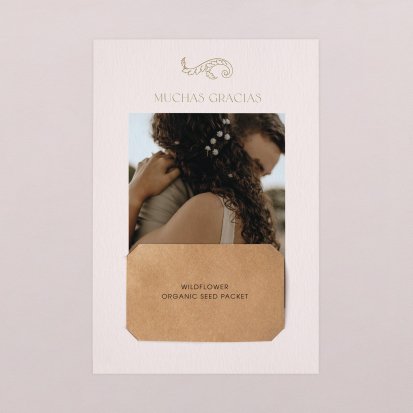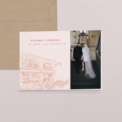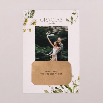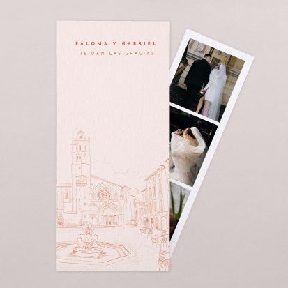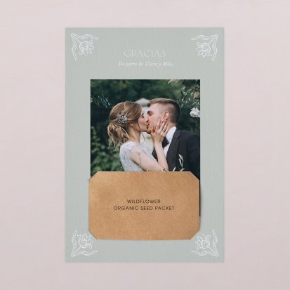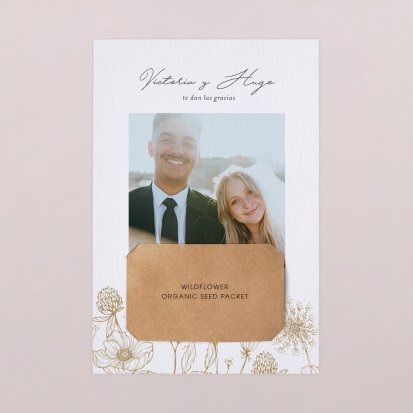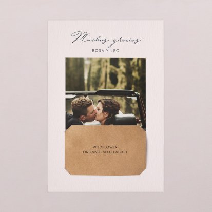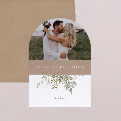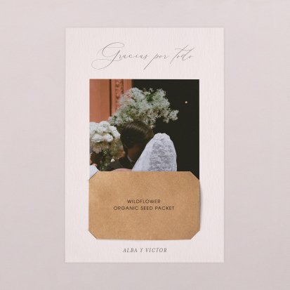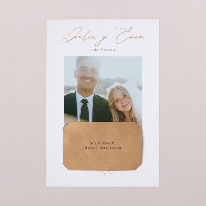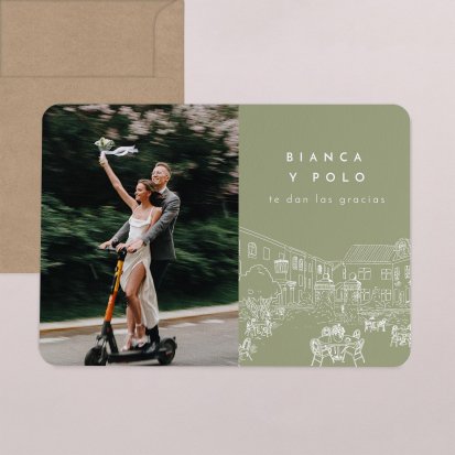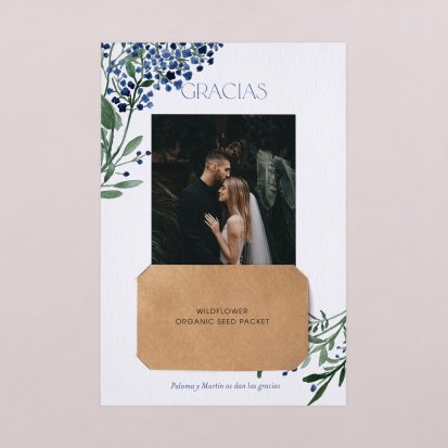Es decir, te ofrecemos una idea que luego puedes modificar a placer hasta convertir tu tarjeta de agradecimiento a los invitados de tu boda en lo que prefieras. Añade una fotografía, cambia la tipografía, emplea los colores que hayas escogido para las invitaciones de boda y para toda la cartelería de la ceremonia, también disponibles en Cotton Bird, y transforma la tarjeta en el punto final de una jornada tan festiva como inolvidable.