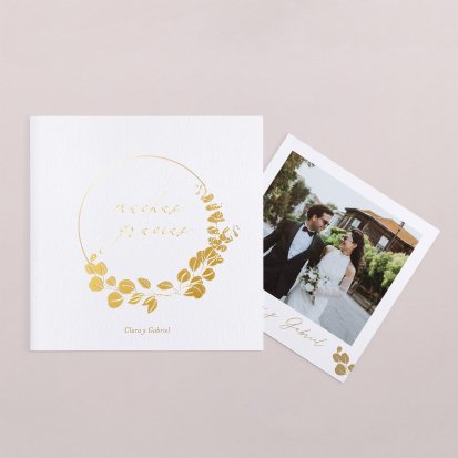 Entendemos que si bien las nuevas tendencias de diseño gráfico parecen imponerse, también debemos ofrecer propuestas más clásicas que no obvien que se trata de una celebración religiosa o civil en la que dos personas deciden compartir sus vidas. Así, la inclusión de elementos alusivos al tipo de ceremonia siempre es un recurso infalible. El empleo de fondos en tonos lisos o la opción de elegir acabados con colores dorados o similares son alternativas muy eficaces.