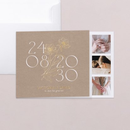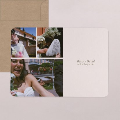 Año tras año nuestros colecciones mejoran, nuestras tarjetas de agradecimiento también. Tarjetas a la moda, inspiradas en nuevos formatos, nuevos diseños... Aquí encontráreis los últimos.